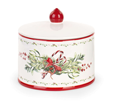 Barattolo Biscottiera Natalizia in Porcellana Decorata Colore Bianco e Rosso