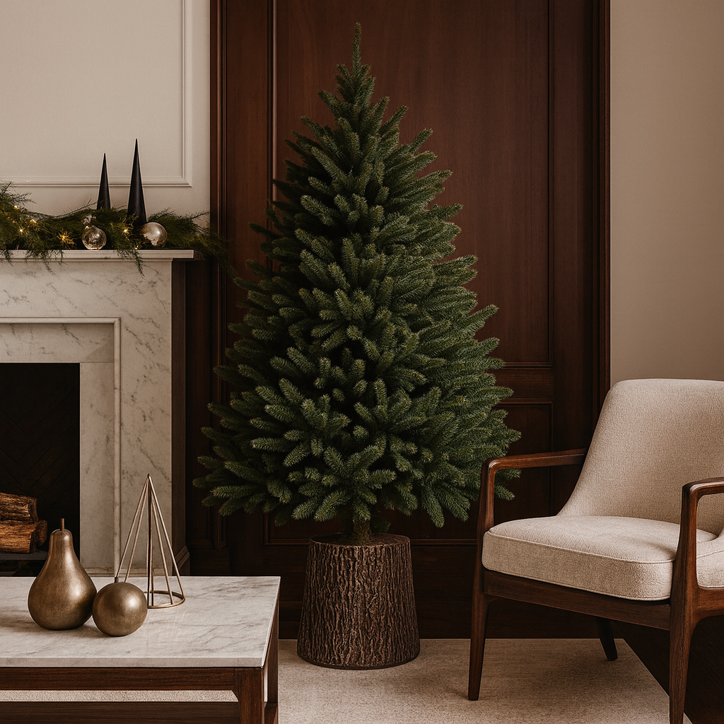 - Effetto corteccia realistico: Progettata per replicare l'aspetto di un tronco d'albero naturale, questa base presenta dettagli accurati di corteccia, conferendo un tocco rustico e autentico alla tua decorazione natalizia.