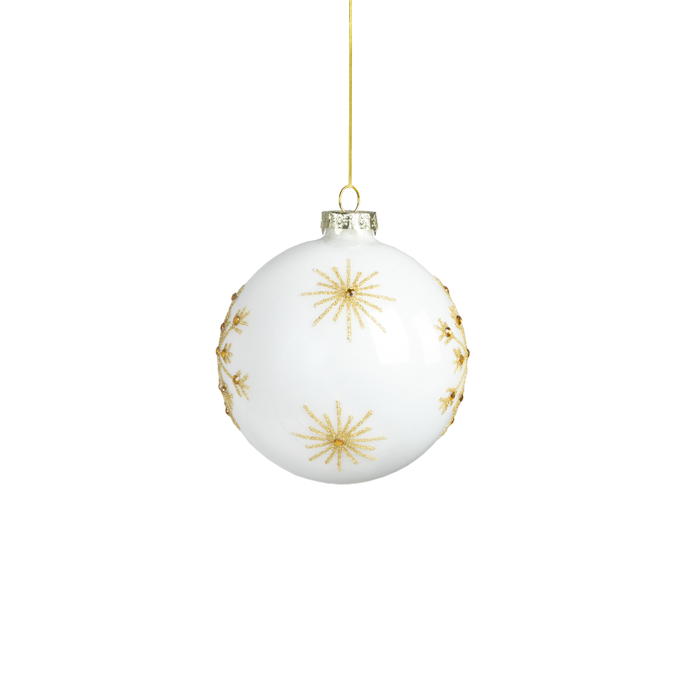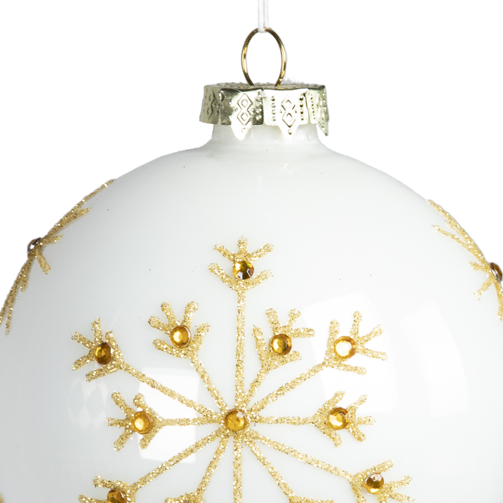 Set 6 Sfere Natale in Vetro Soffiato Bianco con Glitter Ø10 cm - Viron