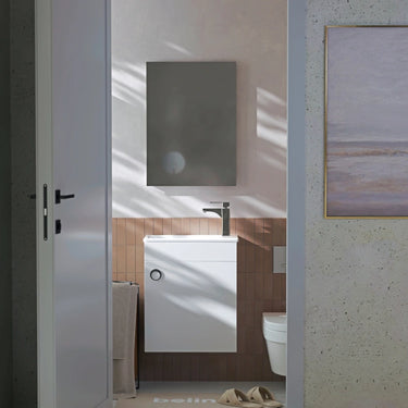 Mobile Bagno Sospeso Salvaspazio 50 cm Bianco con Lavabo e Specchio - Solo