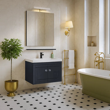 Montaggio senza pensieri: il corpo centrale del mobile arriva già pre-assemblato, una scelta che testimonia massima qualità costruttiva, attenzione al dettaglio e resistenza nel tempo. Il Kit fissaggio a muro incluso è tutto quello che ti serve per posizionare la struttura sospesa, la mensola e lo specchio, mentre il lavabo richiede un'istallazione ad appoggio. Per la massima resistenza e resa nel tempo, è consigliato l'uso di silicone per sigillare le giunture tra lavabo e corpo centrale.