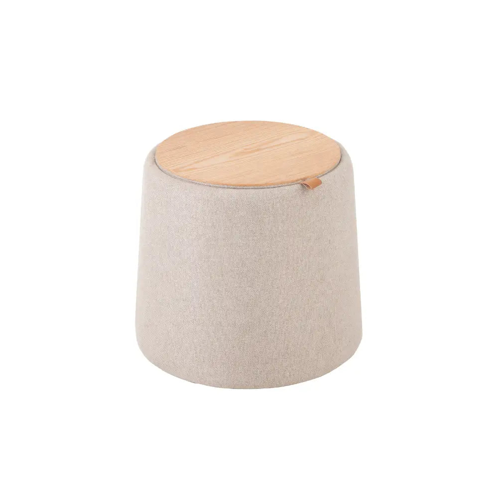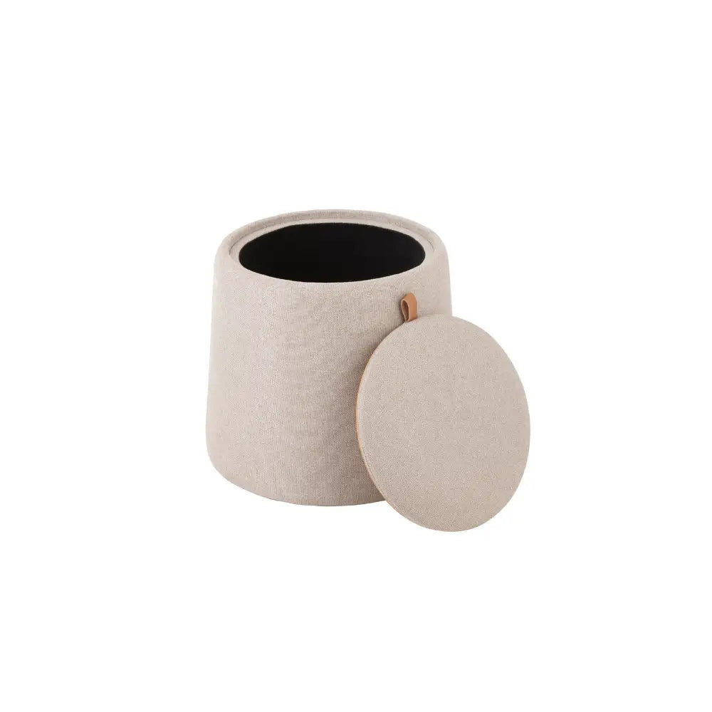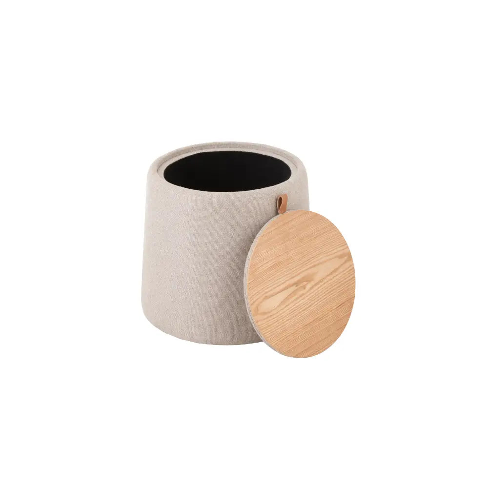 Pouf Contenitore h 42,5 cm in Legno e Lino Beige - Winter Glow