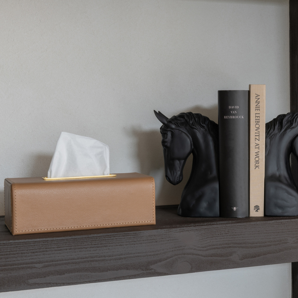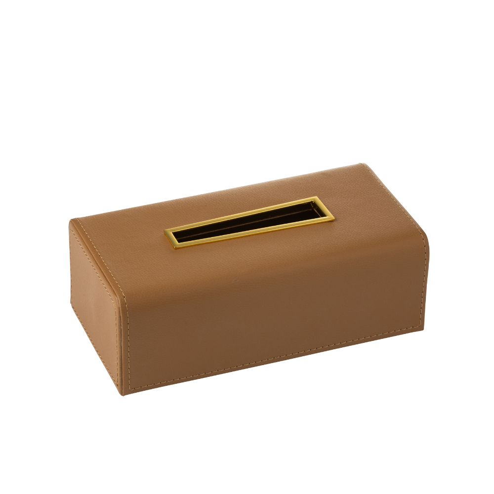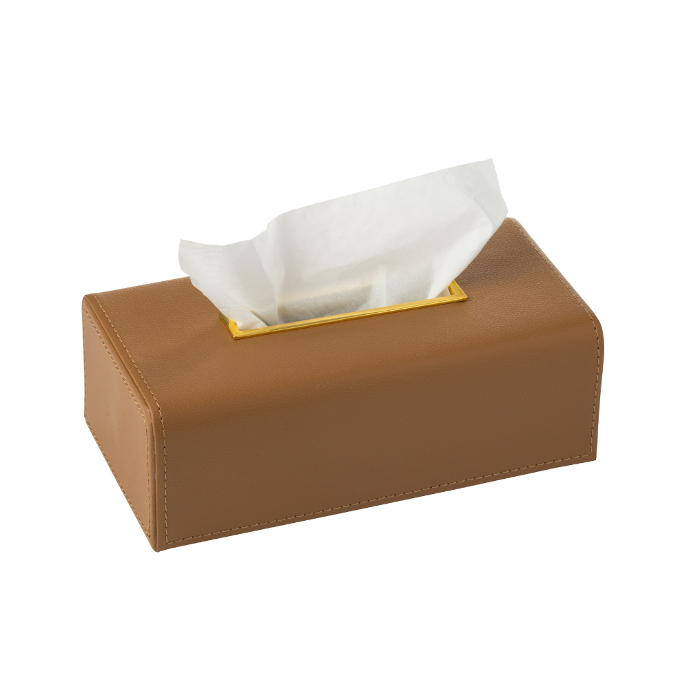Scatola Porta Fazzoletti Effetto Pelle Marrone Cammello