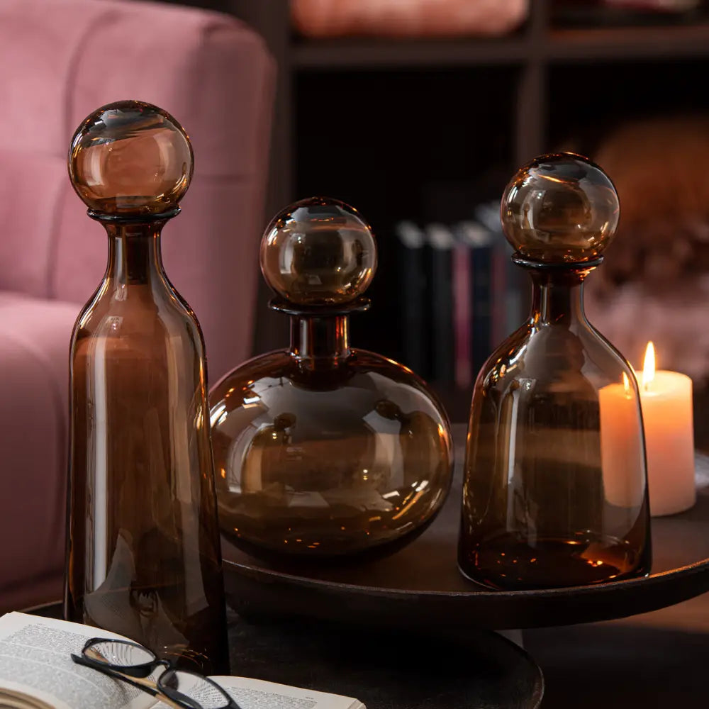 Vaso Bottiglia Decorativa con Tappo in Vetro Marrone h 44 cm - Wild Brown