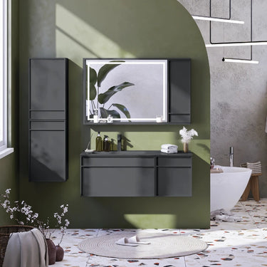 Mobile Bagno Sospeso 100 cm Antracite Opaco con Lavabo e Specchio Contenitore Led - Valkur