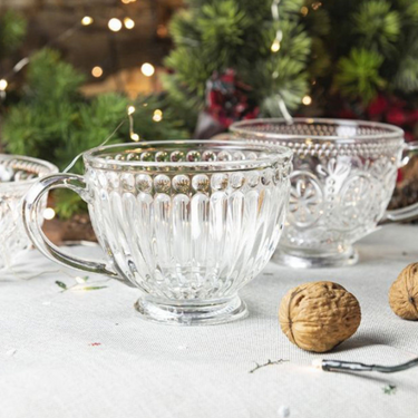 Tazza Mug Jumbo in Vetro Decorato 420ml Imperial - Villa d'Este: questa raffinata tazza è realizzata in vetro trasparente presenta un design decorato che richiama lo stile imperiale, rendendola perfetta per ogni occasione. Con una capacità di 420ml, è ideale per gustare tè, caffè, cioccolata calda o altre bevande calde in modo sofisticato. Il robusto manico offre una presa comoda e sicura, mentre il design trasparente e decorato aggiunge un tocco di classe alla tua tavola. Scegli la Tazza Mug Jumbo in Vetro Decorato 420ml Imperial - Villa d'Este per arricchire i tuoi momenti di relax con stile e funzionalità. Perfetta anche come idea regalo per gli amanti della tavola raffinata.