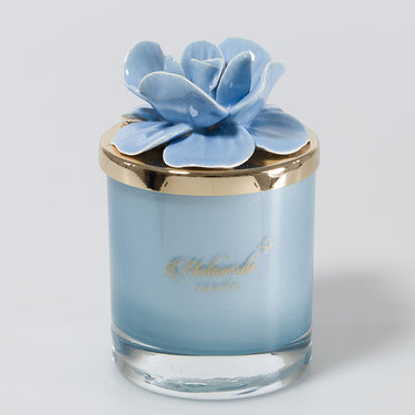 Candela profumata Grande in Vetro con Fiore Capodimonte Azzurra