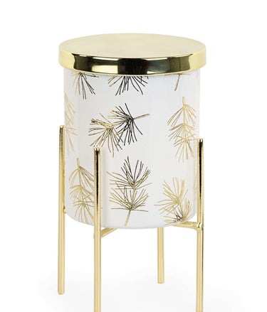 Candela profumata con barattolo in vetro colore bianco con alzata Ø 8 cm: Porta lusso e raffinatezza alla tua atmosfera di casa con la nostra candela profumata, presentata in un barattolo bianco in vetro e con un'elegante alzatina color oro. Il luccicante barattolo in vetro e il tappo dorato non solo proteggono la candela, ma aggiungono un tocco di glamour e stile al tuo spazio. I dettagli in oro donano un aspetto raffinato, creando un contrasto elegante con lo sfondo bianco. La candela è impreziosita da un'alzatina color oro che la trasforma in un vero oggetto di arredo. Oltre alla sua bellezza visiva, la nostra candela diffonde una fragranza avvolgente, creando un'atmosfera rilassante ed accogliente. Sarà perfetta come regalo o come decorazione per i tuoi spazi di casa.