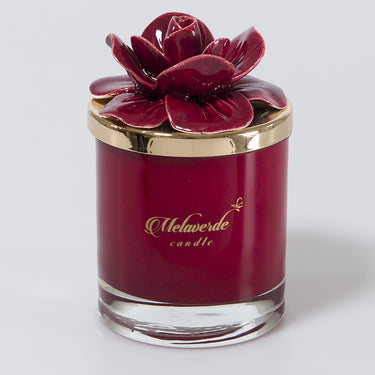 Candela Profumata Media in Vetro con Fiore in Ceramica Capodimonte Bordeaux 200 gr