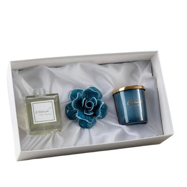 Kit Candela + Profumatore con Fiore in ceramica Capodimonte Blu
