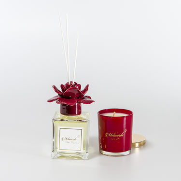 Set Candela + Profumatore con Fiore in ceramica Capodimonte Bordeaux