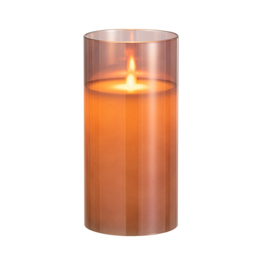 Candela Led in Vetro Colore Marrone con Fiamma Realistica h 20 cm