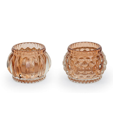 Set 2 Portacandela per Eventi in Vetro Lavorato Colore Ambra h 5 cm