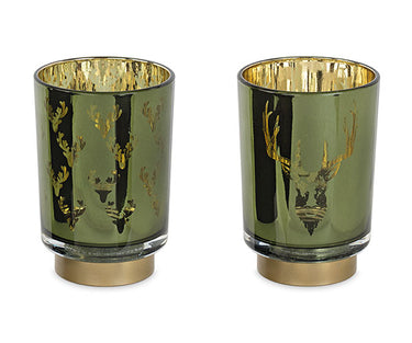 Portacandele con Cervo colore Verde -ø 120 x h 200 mm