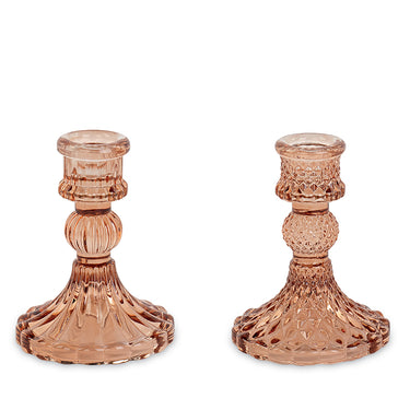Set 2 Portacandela Candelabro per Eventi in Vetro Lavorato Colore Ambra h 17 cm