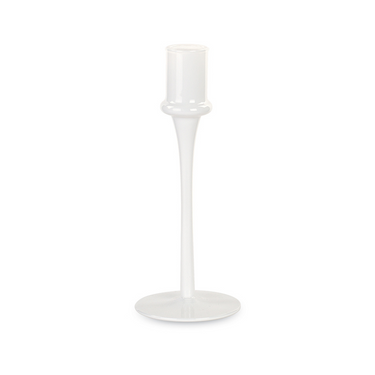 Candeliere Portacandela 1 Fuco in Vetro Colore Bianco h 19 cm