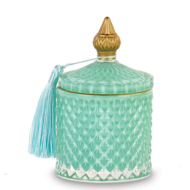 Potiche in Vetro Colore Tiffany con Candela Profumazione Lime e Pepe 400 gr