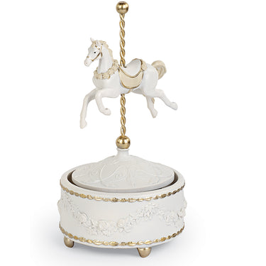 Cavallino Natalizio con Musica Carillon Natalizio Colore Beige e Oro h 23 cm