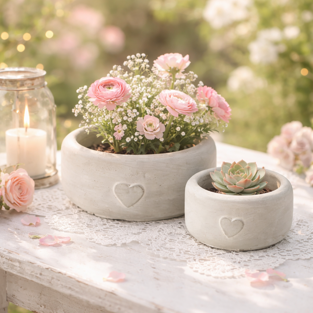 Portavaso con Cuore in Cemento Grigio Large - Lovart: Immergi la tua casa in un'atmosfera di amore e dolcezza. Questo portavaso non è solo un complemento per le tue piante, ma anche un elemento decorativo che regala una nota di romanticismo ad ogni angolo della tua casa. Il colore neutro e versatile, si adatta perfettamente a qualsiasi stile di arredamento, mentre il cuoricino disegnato regala a questo piccolo oggetto di arredamento uno charme unico. Il design minimal e lineare rende questo portavaso ideale per tutti i tuoi spazi della casa, dal soggiorno alla cucina, dal balcone al giardino. Sei pronto a dare vita alle tue piante con un po’ romantico? Aggiungi un elemento di fascino e amore alla tua casa.
