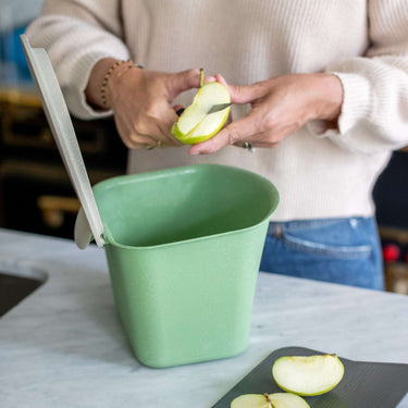 Cestino da Tavolo con Coperchio Colore Grigio - BIBO Koziol: questo cestino da tavolo presenta un design moderno, ideale per qualsiasi ambiente. Costruito con materiali innovativi e sostenibili è dotato di un coperchio beige che garantisce una chiusura sicura per evitare fuoriuscite di odori, la linguetta sporgente è ideale per una facile apertura e chiusura. Adatto per l'uso in cucina, per la toilette o in ufficio e qualsiasi altro ambiente dove è necessario un contenitore per piccoli rifiuti organici o altri scarti, grazie al suo formato compatto, BIBO può essere inserito anche in spazi piccoli. Facile da pulire, questo cestino da tavolo è la scelta perfetta per chi cerca una soluzione pratica, elegante e rispettosa dell'ambiente per la gestione dei rifiuti quotidiani.