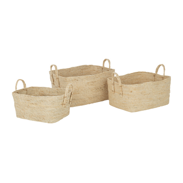 Set 3 Cesti Rettangolari con Manico in Fibra Naturale