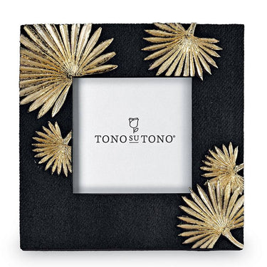 Cornice Portafoto in Tessuto Colore Nero e Decorazione Palme Colore Oro