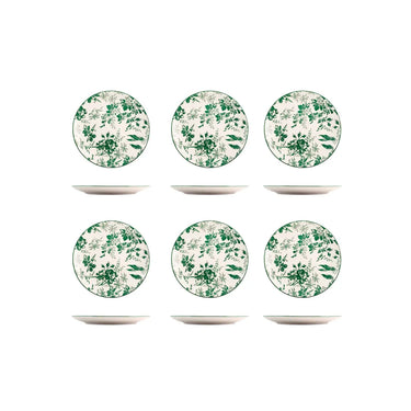 Set 6 Piattini Frutta in Porcellana Ø 19 cm Floreale Verde Margaret – H&H