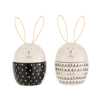Barattolo Coniglietto di Pasqua in Ceramica 19,5 cm- Japanese: regala un pizzico di dolcezza pasquale alla tua casa con questo barattolo a forma di coniglietto. Realizzato in ceramica, questo barattolo presenta dei piccoli decori bianchi e neri, sarà perfetto per conservare cioccolatini, caramelle o piccoli oggetti, o semplicemente come accessorio decorativo per la tua casa. Il design semplice ed essenziale lo rende un'aggiunta perfetta per qualsiasi stanza della tua casa, dalla cucina al soggiorno fino al salotto di casa. Sorprendi le persone che ami con un pensiero originale e dolce. Questo simpatico barattolo a forma di coniglietto è un'idea regalo perfetta per Pasqua, potrai aggiungere degli ovetti di cioccolato o dei deliziosi confetti e confezionarlo insieme a dei nastri colorati per celebrare la Festività.