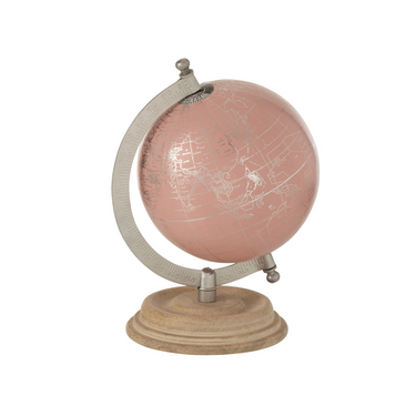 Mappamondo con Piede in Legno Rosa e Oro Small