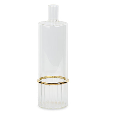 Bottiglia Decorativa Cilindrica in Vetro Trasparente con Anello Colore Oro h 30 cm