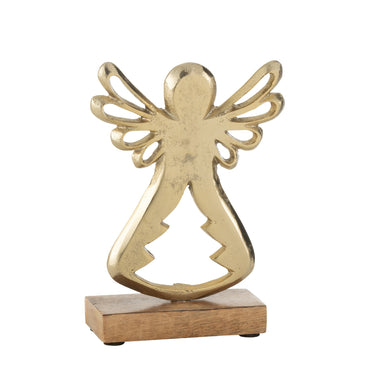 Decorazione di Natale Angioletto Natalizio in Metallo Dorato Small: questa statuetta decorativa Angioletto di Natale è il complemento perfetto per le tue decorazioni natalizie. Realizzata in metallo dorato e montata su una base in legno, unisce un design moderno e minimalista alla tradizionale dell’atmosfera natalizia. Questa statuetta è perfetta per decorare qualsiasi ambiente durante le festività, posizionala su una mensola, su un tavolo o sul camino per creare un'atmosfera magica e invitante. Il design essenziale dell’Angioletto con le piccole ali dona alla statuetta uno aspetto raffinato e delicato. La finitura dorata aggiunge luminosità, creando un'atmosfera accogliente e festiva. La base in legno, invece, fornisce un contrasto elegante con il metallo, inoltre rende la decorazione stabile in modo da poterla appoggiare su qualsiasi piano della casa.