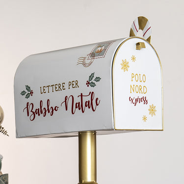 Cassetta Postale Natalizia in Ferro Colore Beige e Oro h 100 cm – Babbo Natale