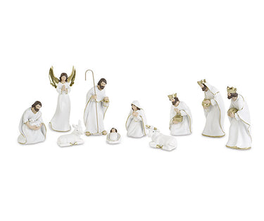 Natività Presepe in Resina Bianca con Finiture Dorate 10 Personaggi - Clarus