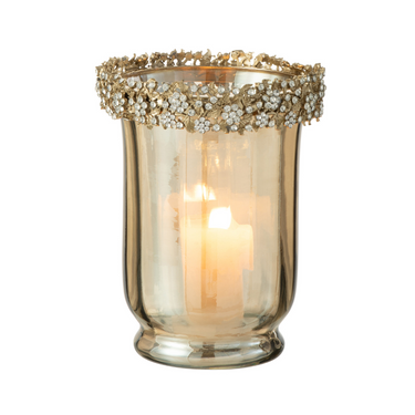 Vaso in Vetro Trasparente Fumé con Decorazioni Fiori in Strass h 19 cm