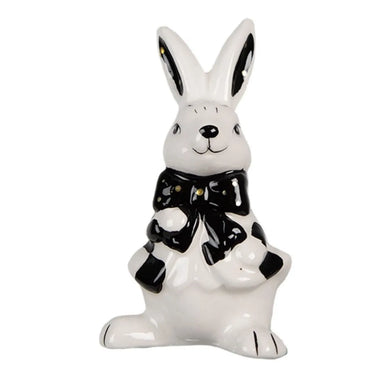Statuetta Coniglio in Ceramica Bianco Nero h 9 cm