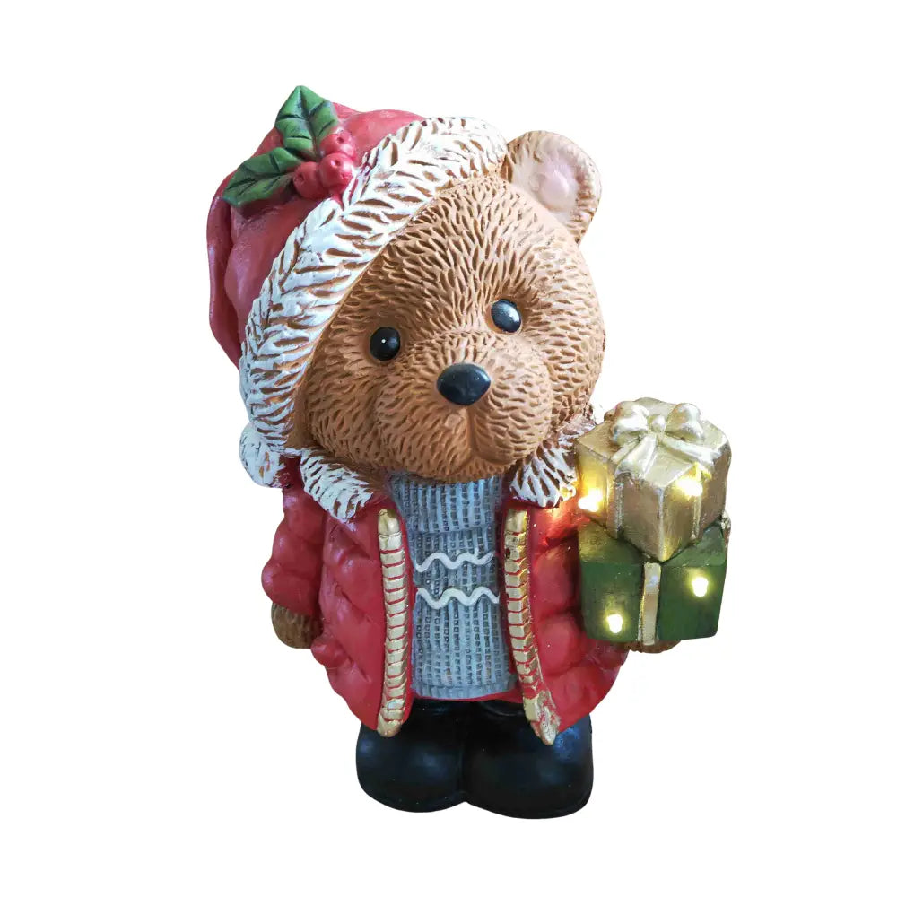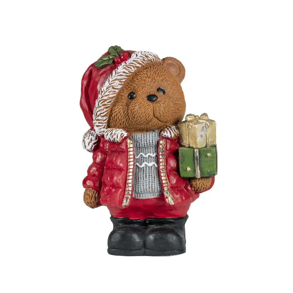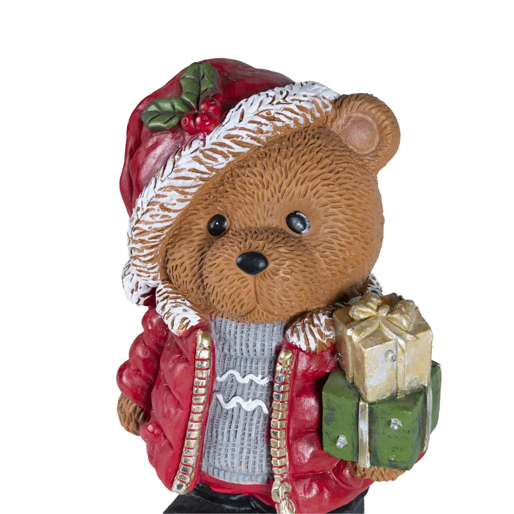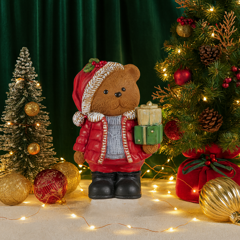 Lasciati conquistare da questo dolce protagonista del Natale. La nostra statuetta raffigura un simpatico orsetto vestito a festa, curato in ogni minimo dettaglio: dal suo maglioncino lavorato al cappellino invernale decorato con agrifoglio, ogni particolare è pensato per trasmettere gioia e calore.
