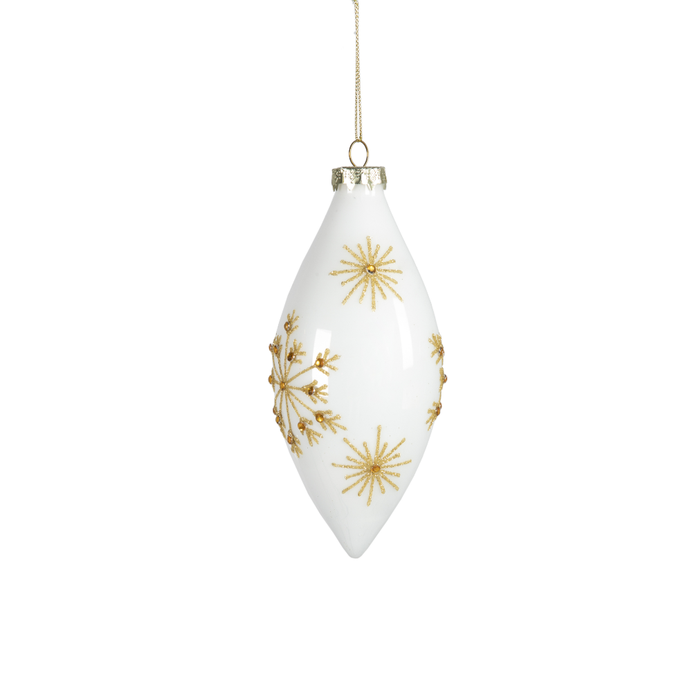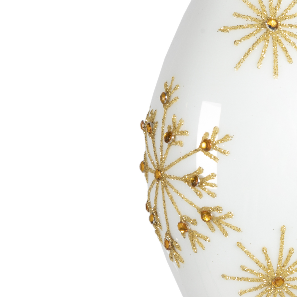 Set 6 Pendenti Natale in Vetro Soffiato Bianco con Decori Oro - Viron