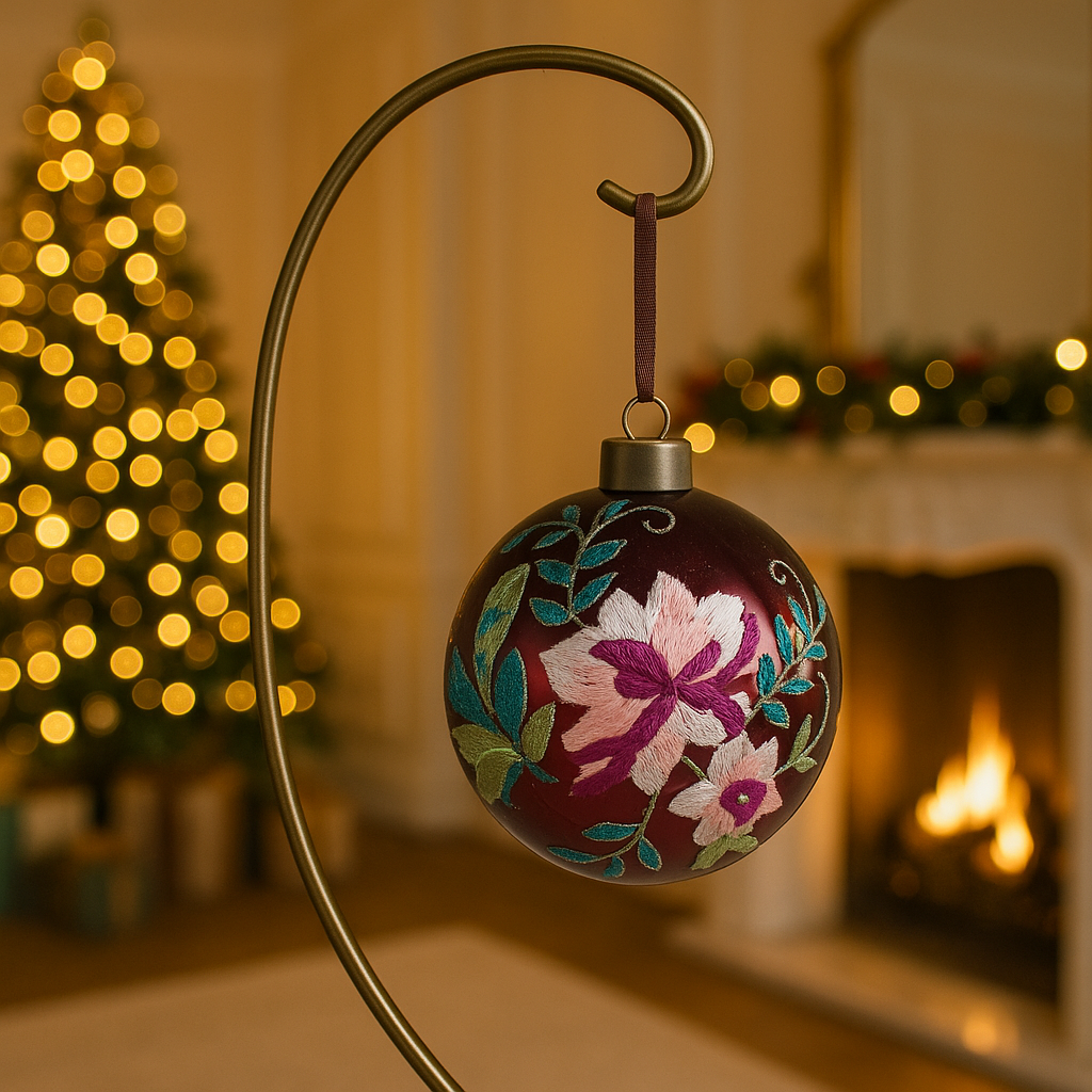 Ma il vero segreto della loro bellezza è il delicato ricamo fiorato che le decora. Realizzato con un filo di seta, ogni decoro è un dettaglio di stile che parla di tradizione e di una cur nel dettaglio, rendendo ogni sfera una decorazione originale. A completare il design, un gancio in ottone dal sapore vissuto e un cordoncino in cuoio fondono robustezza e un'estetica naturale e ricercata.