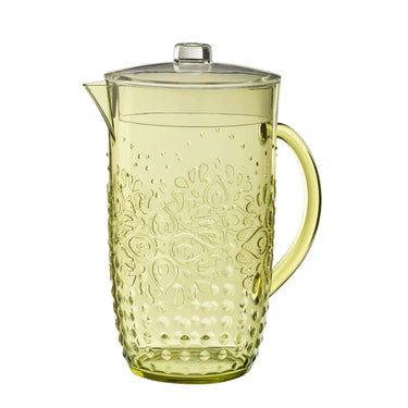 Caraffa con Coperchio Infrangibile Colore Verde 2,5 L: servi le tue bevande con stile e praticità grazie a questa caraffa verde decorata, dotata di coperchio. Perfetta per rinfrescare le tue giornate estive, questa caraffa è l'ideale per acqua, succhi di frutta, tè freddo e cocktail, sia in casa che all'aperto. La caraffa è infrangibile e leggera, quindi adatta anche per pic-nic, feste in giardino e a bordo piscina. Il coperchio assicura che le tue bevande rimangano fresche e protette da insetti. Il design decorato in rilievo aggiunge eleganza e uno stile vivace alla tua tavola.
