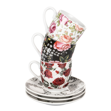 Set 6 Tazzine Caffè in Porcella con Piattino Rose Baroque - Villa d'Este