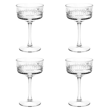 Set 4 Coppe Champagne in Vetro Trasparente Sagomato 26 cl – Elysia