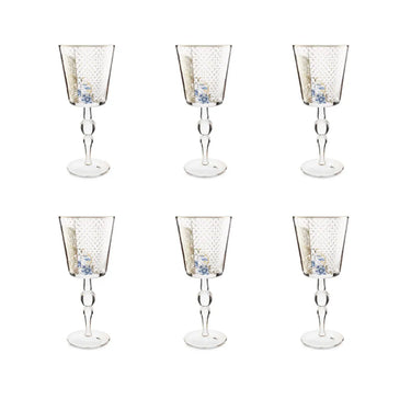 Set 6 Calici da Vino in Vetro Decorati 360 ml Royal White– Pip Studio