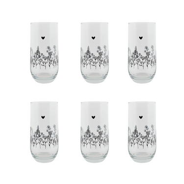 Set da 6 Bicchieri da Bibita 280 ml in Vetro Fantasia Floreale - Botanic