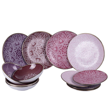 Servizio Piatti 12pz in Gres sfumature Viola Baku Provence - Villa d'Este