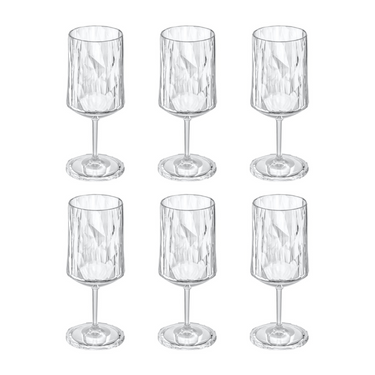 Set 6 Bicchieri Cocktail 300 ml Infrangibili Trasparenti - Club N. 4 Koziol: questo set della linea superglas Koziol presenta 6 bicchieri infrangibili realizzati con un materiale innovativo, si adattano perfettamente a bevande sia fredde che calde. I bicchieri possono essere lavati in lavastoviglie e sono riutilizzati e proteggendo così l’ambiente. Ideali per cocktail a bordo piscina e feste in giardino, sono perfetti per tutti coloro che hanno a cuore stile, gusto e sicurezza.