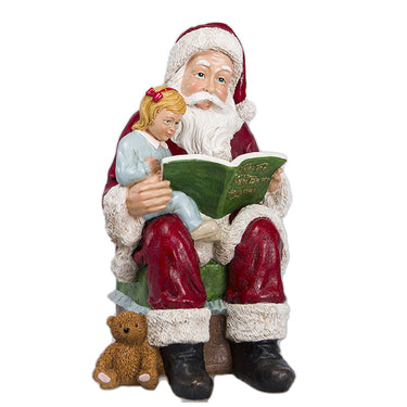 Statuetta Natalizia Decorazione Natale Santa Claus Seduto con Bambina h 31 cm