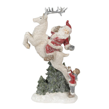 Statuetta Decorativa Natalizia Babbo Natale e Renna con Bambino h 33 cm