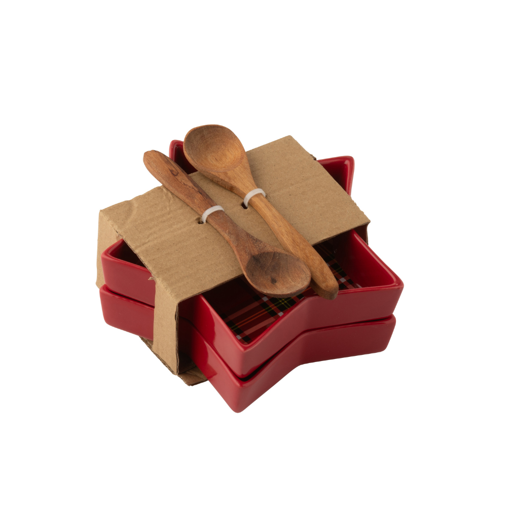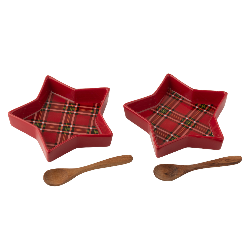 Set 2 Piattini Stella di Natale Fantasia Scozzese Rosso con Cucchiaini - The Christmas Show
