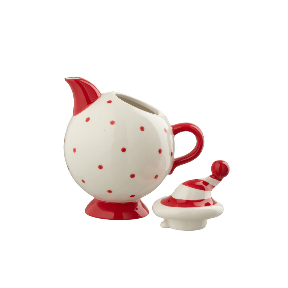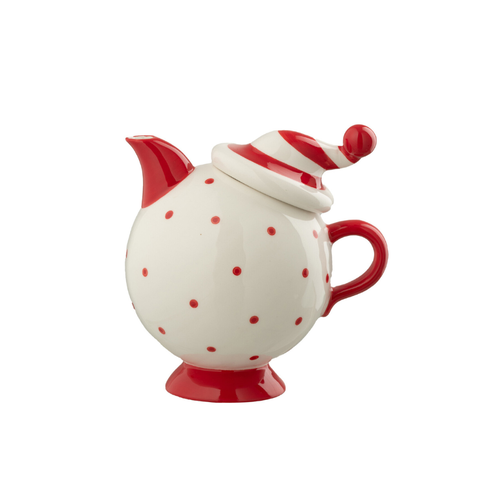 Teiera Natalizia in Ceramica con Cappello Dolomite Bianco Rosso Pois h 15,5 cm