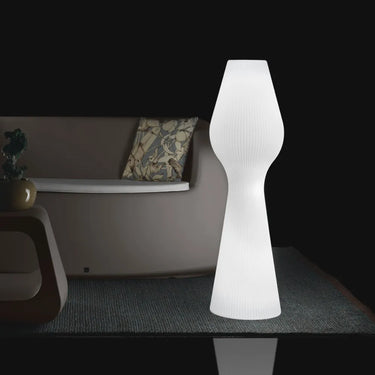 "Stripes" è una lampada led da interno a forma di calice che reinterpreta il design retrò con un tocco di modernità. Ideale per ambienti contract e spazi domestici, illumina e arreda con stile, diventando protagonista della stanza. La texture tridimensionale crea un gioco di luci e ombre che richiama un'estetica vintage, mentre la forma slanciata del calice dona un’eleganza senza tempo. "Stripes" non è solo una fonte di luce, ma un elemento di design che arricchisce l'arredo con personalità. Realizzata in polietilene, "Stripes" è resistente, leggera e facile da spostare. Il materiale è riciclabile al 100% e resiste a urti e agenti atmosferici, garantendo una lunga durata nel tempo. La lampada integra un tubo LED T8 con cavo e interruttore on/off a pedale. La luce calda crea un'atmosfera accogliente e rilassante, ideale per ambienti interni come salotti, camere da letto e zone living.